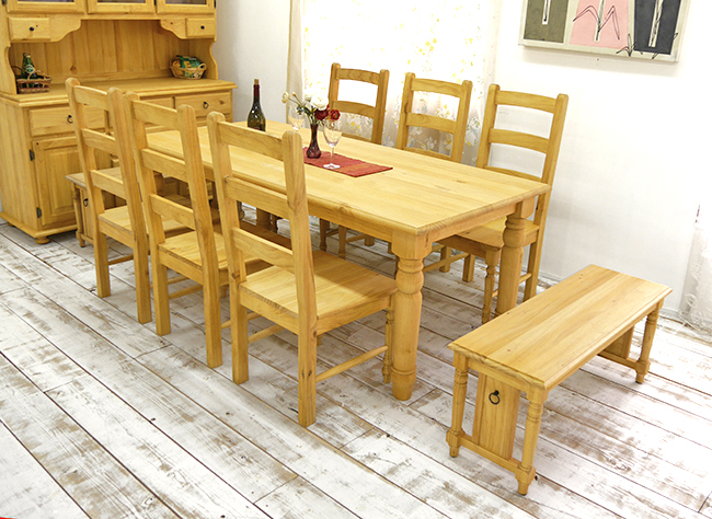 パイン無垢材の柔らかな木肌を活かしたオイル仕上げの安心安全なダイニングテーブル