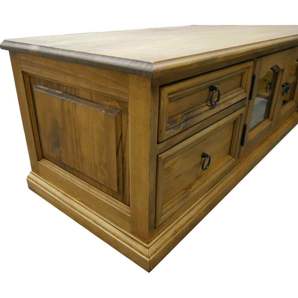 天板の端部のやわらかい面取りデザインや扉・本体サイドの凹凸のある浮き彫り仕上げのデザインがとっても素敵です♪ 細部までこだわったやわらかいデザインがかわいいカントリーローテレビボードです