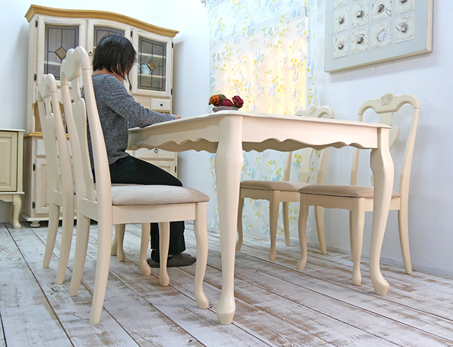 【クィーンアン/幅150cmダイニングテーブル 5点セット】 |