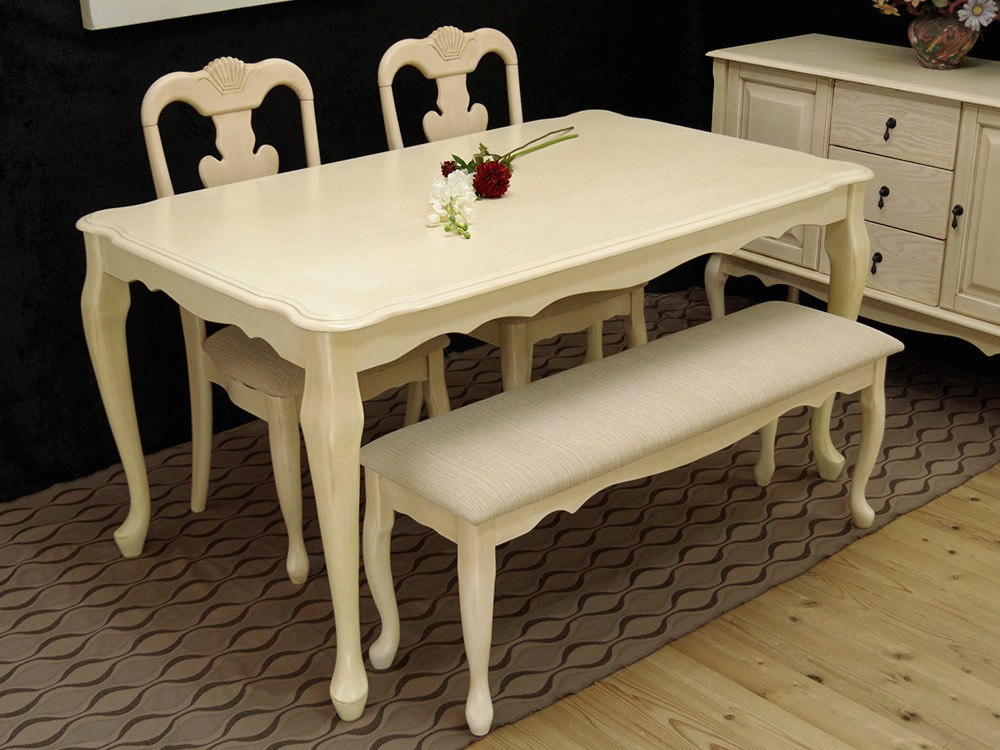 クイーンアン様式のクラシック調家具です♪猫脚などの曲線をいかしたデザインとアイボリー色のデザインが人気です