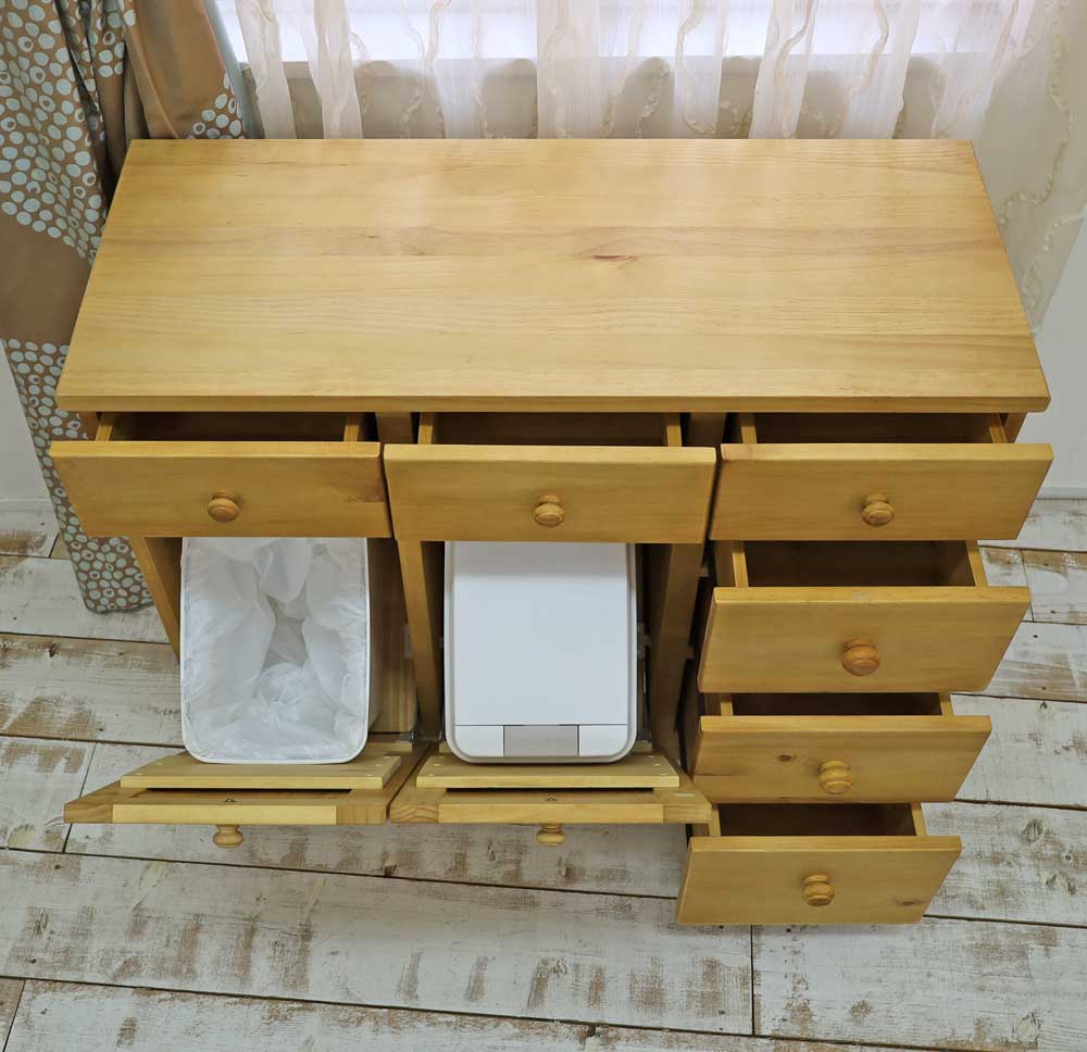 キッチンカウンターLily1045巾100cm(ナチュラル色)|木製取手|ペール収納