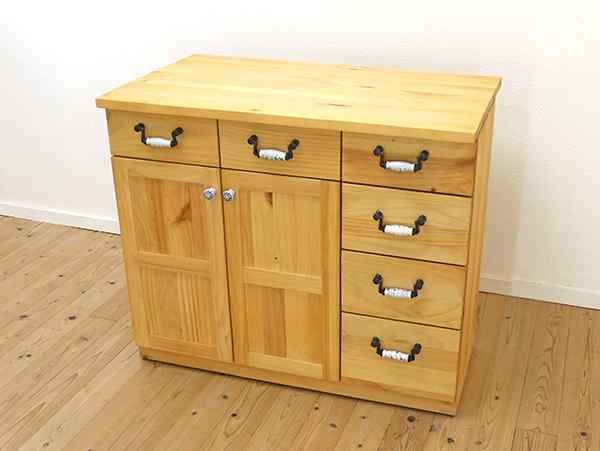 パイン無垢材は集成材(縦横共に接合された小さな無垢材の集合材)ではなく、よこはぎ材(横面接合で縦方向には一枚板)を使用して作っています。ボードや化粧板を使用せず、工場でのラッカー着色、オイル仕上げの3つの条件は、F☆☆☆☆(フォースター)の表示義務がないほど、安全性の高いものです。