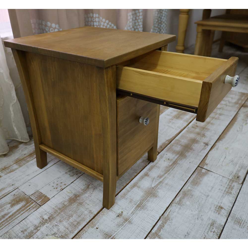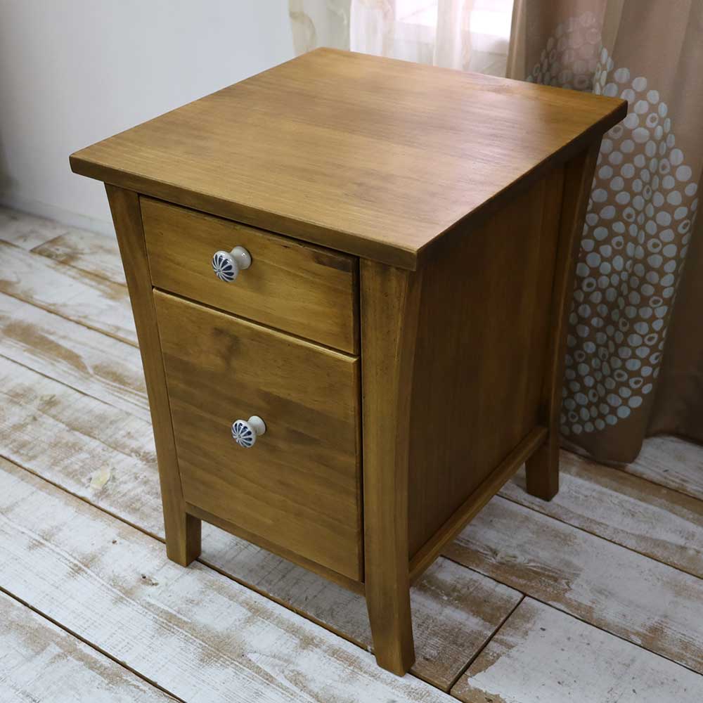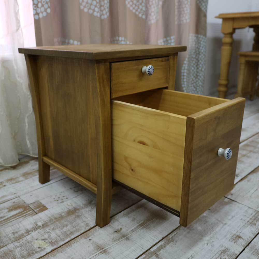 カントリーデザインのパインミニチェストです。小引出しとして、デスクチェストに、ベッドサイドに置いてナイトテーブルに、電話台やFAX台に、いろいろ使えます♪ パイン無垢材をふんだんに使い、自然塗料で仕上げたカントリーパイン家具です♪