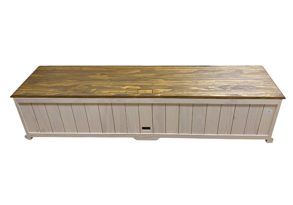 こちらは受注生産品・角丸加工のローボードです。天板前面と台輪前面に角丸加工(コインR)を施しております。