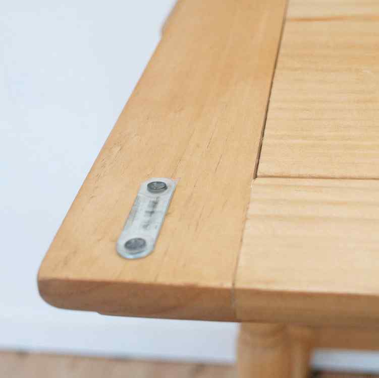 (7)デスク天板には左右に1箇所ずつプレートがついています。このプレートと(1)のマグネットで天板が閉まります。
