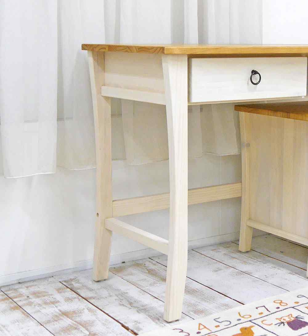天板や脚の見える部分だけでなく天板裏や天板裏の部材などもパイン材を使用したこだわりのパイン家具です♪