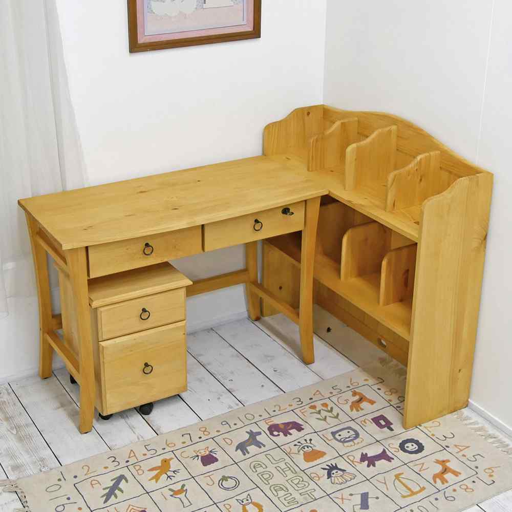 シンプルデザインが人気のカントリーデスク「バレンシア」に上置き本棚をセットしたバレンシア本棚付きデスク+キャスター付ファイルチェストのセットです♪