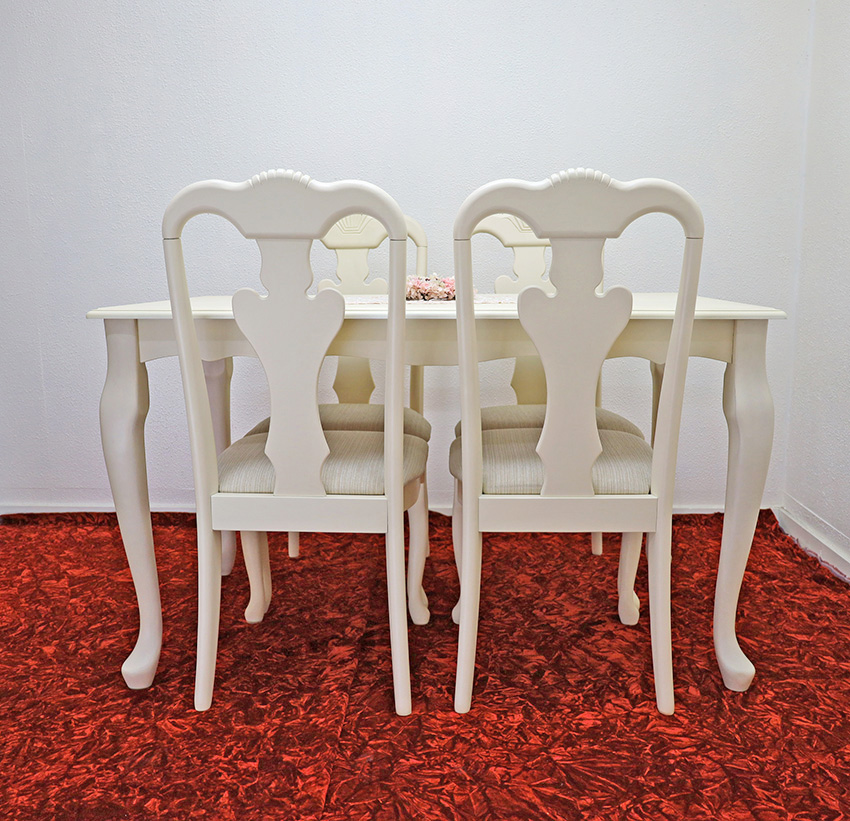 | 【クイーンアン/4人用猫脚ダイニングテーブル5点セット】 幅128cm/4人掛け猫脚ダイニングテーブルセット |