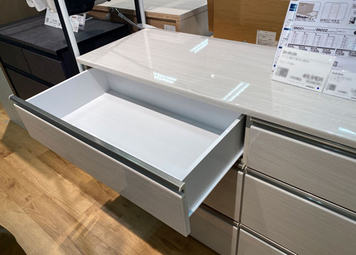 引き出し裏側もその材料と造りは写真の様な材料=MDF素材で出来ています。