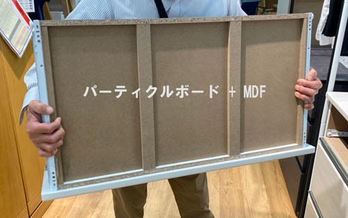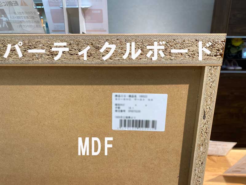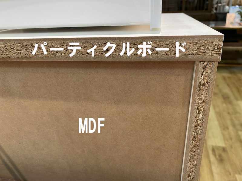 表はお洒落なデザイン?安心価格?・・・その裏にご注目ください。パーティクルボードとMDFで出来ています。