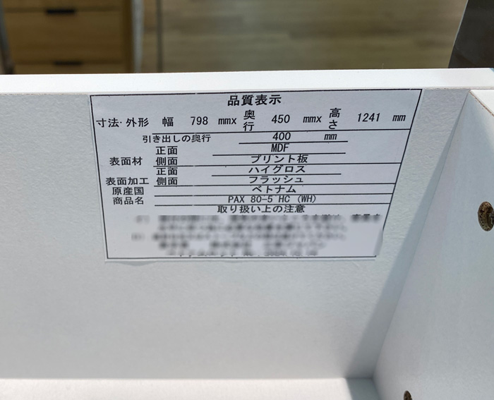 ただどの家具にも内部、引き出しなどは何も処理されていないことが多く、開けた瞬間モワーっと、頭が痛くなるほどの刺激臭が出てきます。
